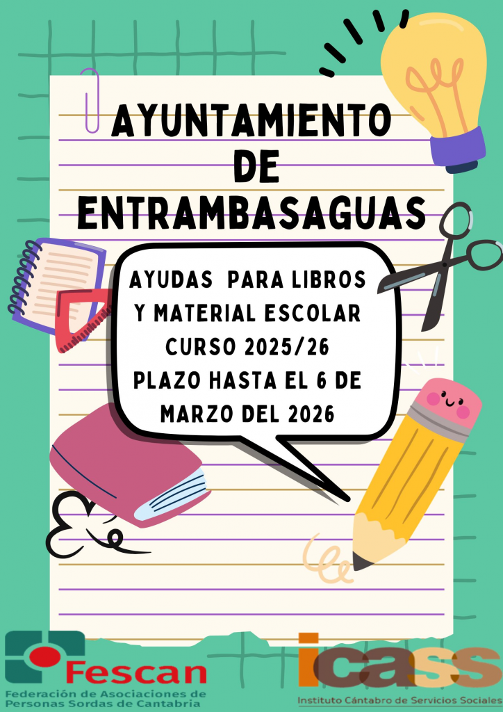 El Ayuntamiento de Entrambasaguas abrió el pasado 9 de febrero el plazo de solicitudes para las ayudas al estudio (libros y material escolar) para este curso 2025/2026.