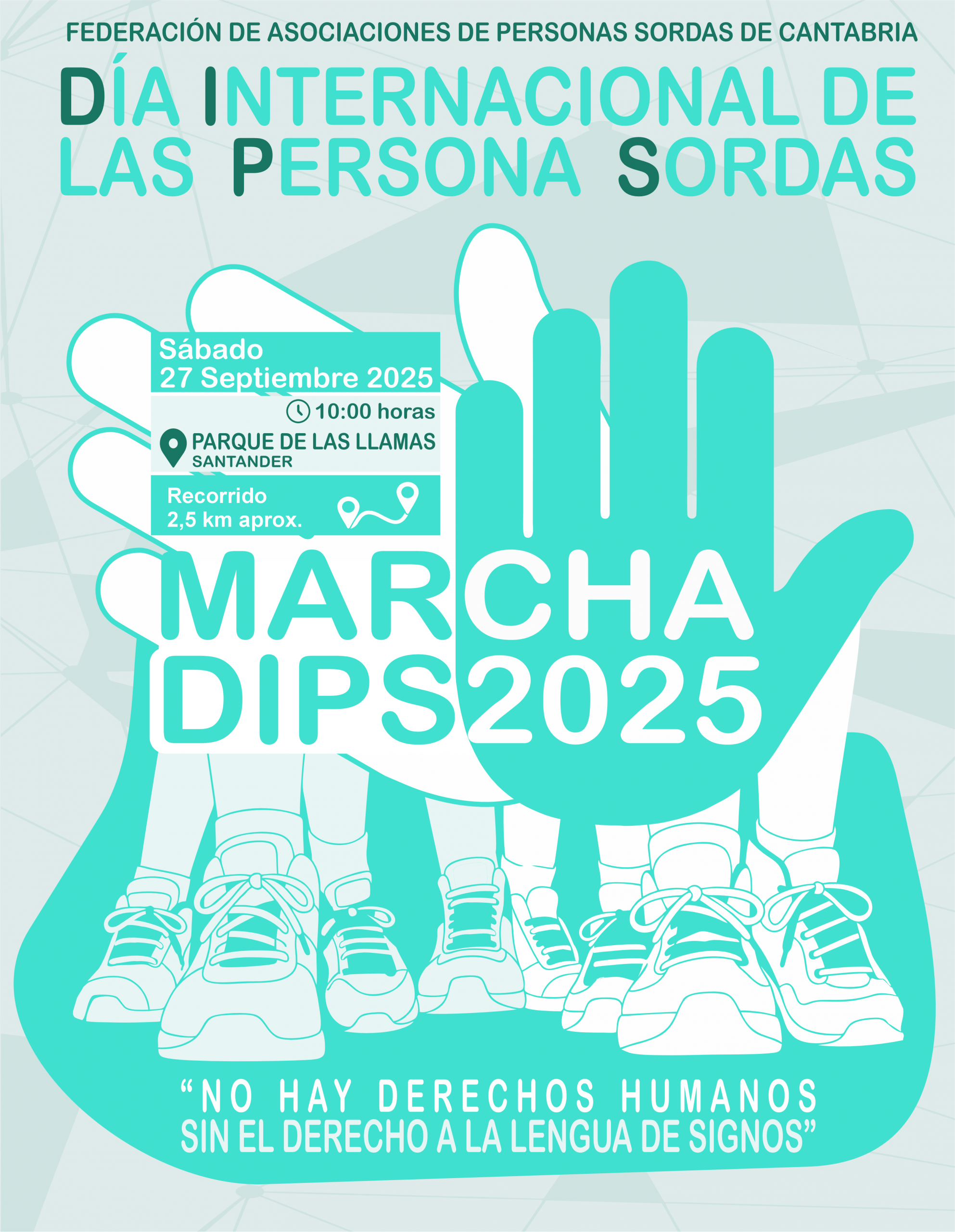 Con motivo del Día Internacional de las Personas Sordas (DIPS), la Federación de Asociaciones de Personas Sordas de Cantabria (FESCAN) organiza la 1ª Edición de la Marcha DIPS, un evento deportivo y no competitivo que se celebrará el próximo 27 de septiembre a las 10:00 horas en el Parque de las Llamas de Santander.