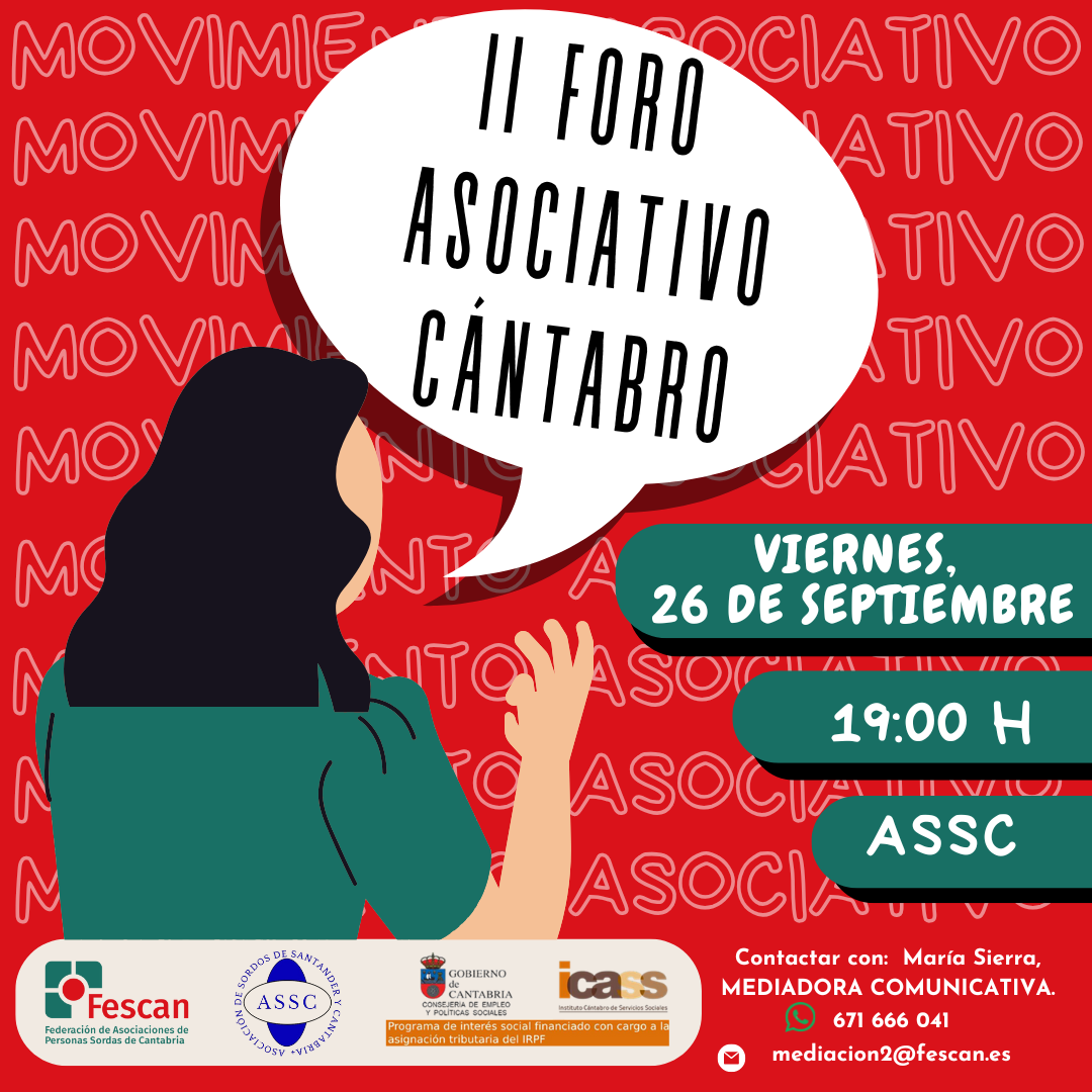 El próximo viernes 26 de septiembre, os esperamos en la sede de la Asociación de Sordos de Santander y Cantabria ASSC, (Calle Alta 46) para charlar sobre el futuro del movimiento asociativo de nuestra Comunidad Sorda