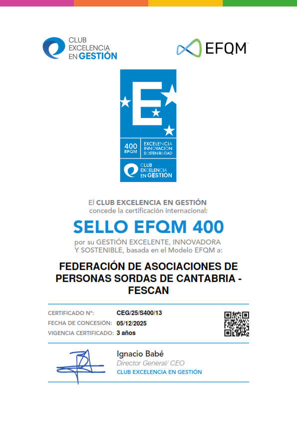 En el año 2013 FESCAN obtuvo el Sello de Compromiso hacia la Excelencia Europea por nuestro sistema de Gestión de Calidad basado en el modelo EFQM, renovándolo en 2015.