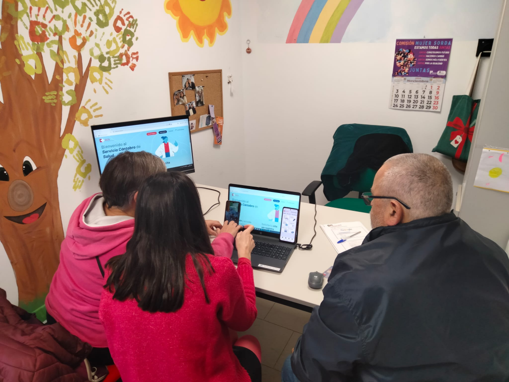 Os dejamos con una imagen del taller de «Gestiones burocráticas», que tuvo lugar el pasado 20 de noviembre, y en el que nuestra Trabajadora Social forma a las personas sordas en realizar gestiones de la Administración Pública a través de internet.
